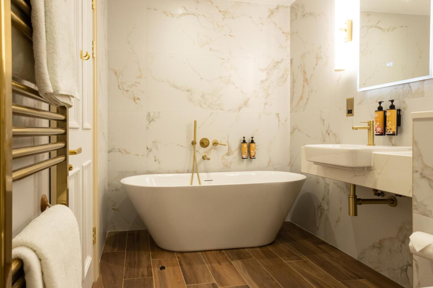 The spacious en suite bedrooms include a TV, telephone, hairdryer, and tea and coffee making facilities. Some rooms feature views across the gardens.