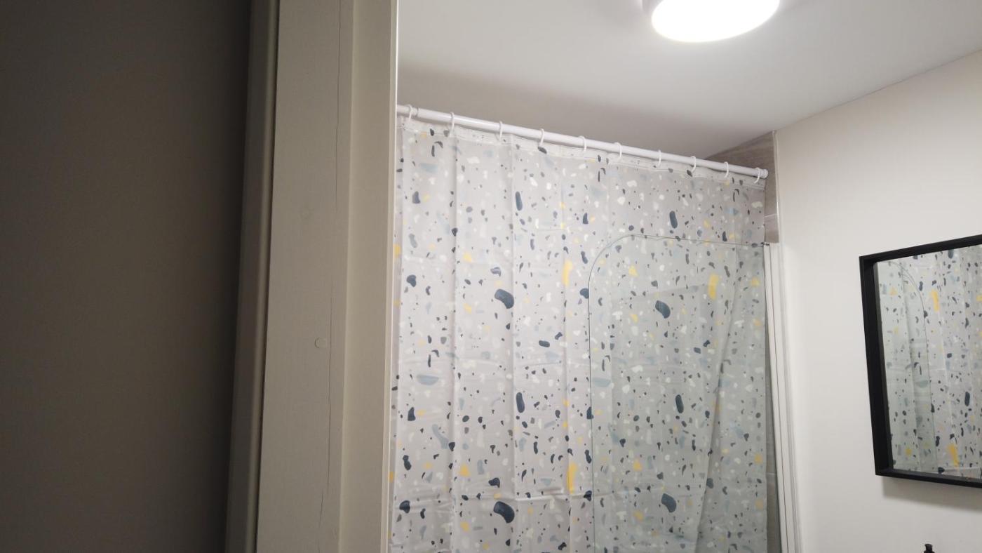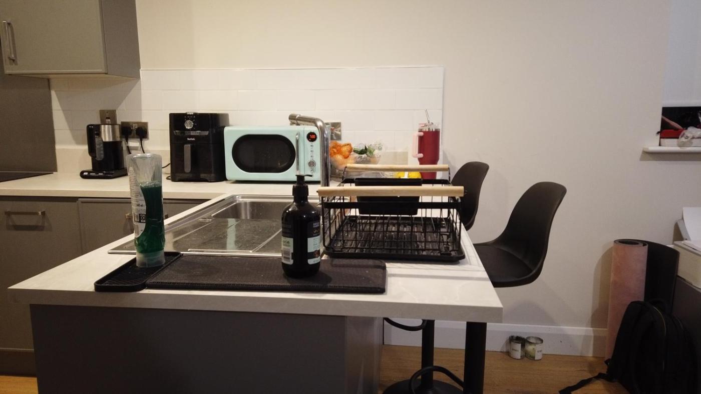 The kitchen features a dishwasher, a microwave and a fridge and there is a shared bathroom with slippers and free toiletries.