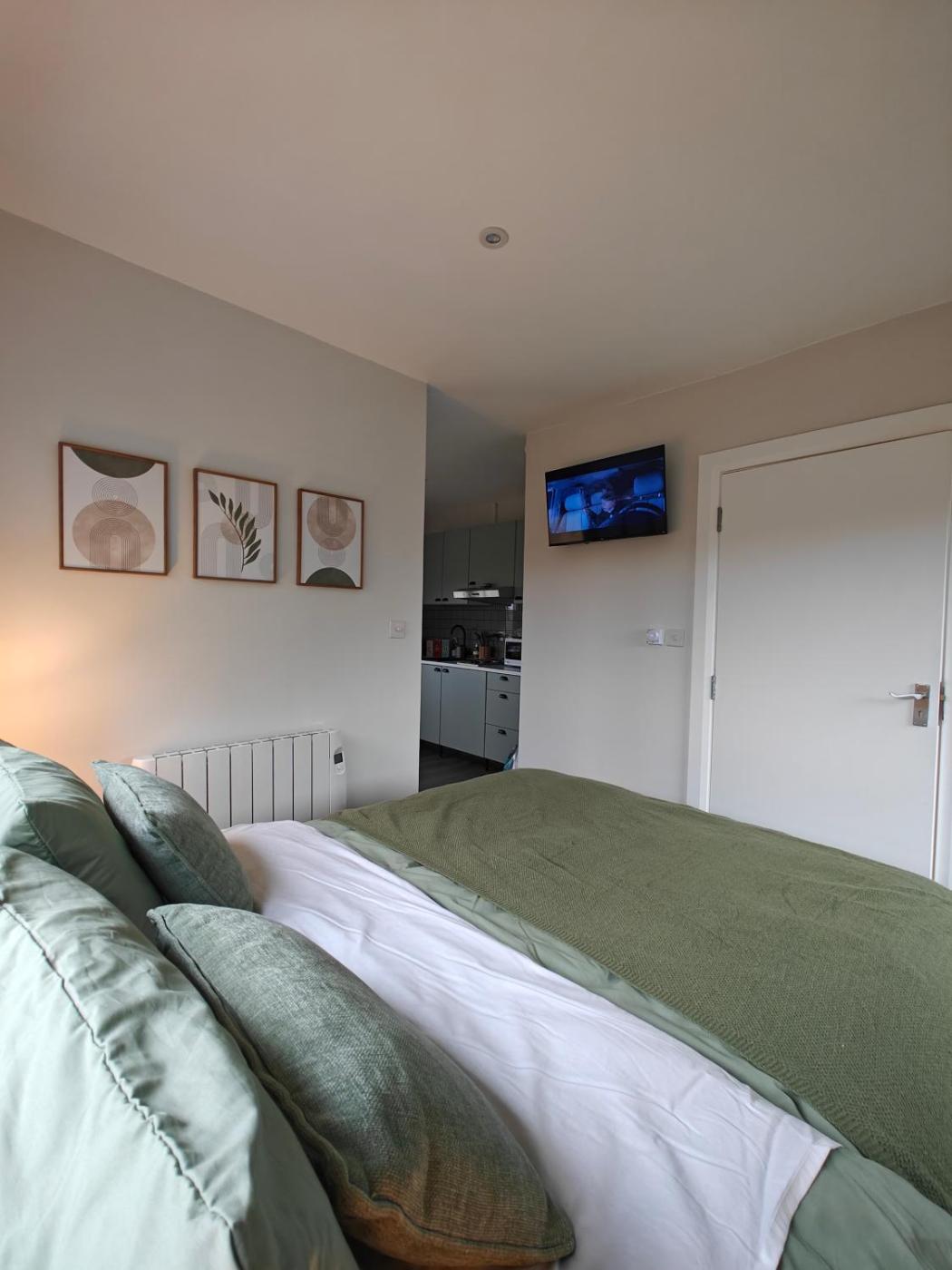 The apartment is composed of 1 bedroom, a fully equipped kitchenette, and 1 bathroom. A flat-screen TV is provided.