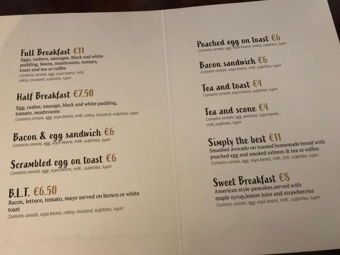 The restaurant offers a lunch menu with a large range of sandwiches and wraps.